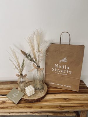 ואזה 15 ס”מ + זר פרחים מיובשים כ25 ס”מ